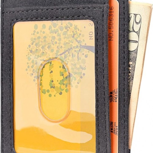 Buffway Slim Minimalist Front Pocket RFID Blocking Leather Wallets for Men and Women – At Sahara Carbon Black
