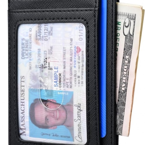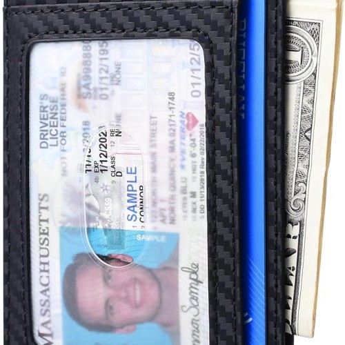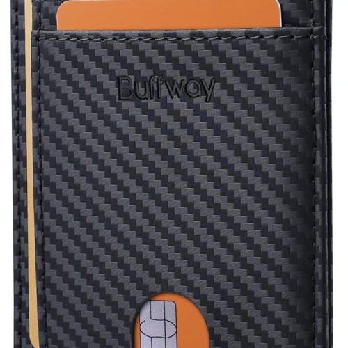 Buffway Slim Minimalist Front Pocket RFID Blocking Leather Wallets for Men and Women – Carbon Fiber Black