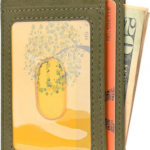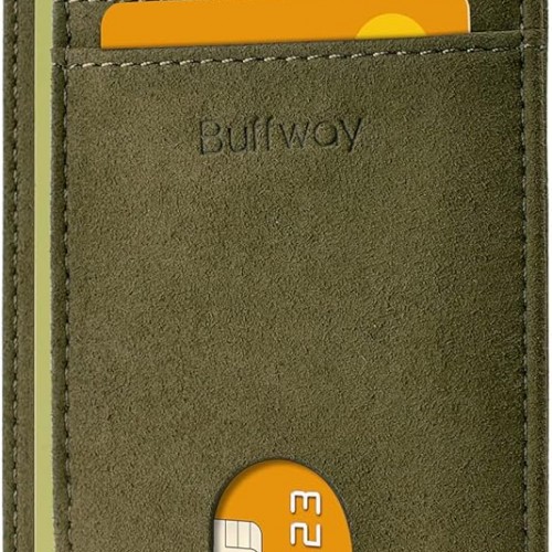 Buffway Slim Minimalist Front Pocket RFID Blocking Leather Wallets for Men and Women – At Sahara Desert Green