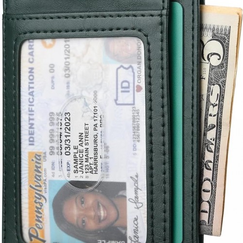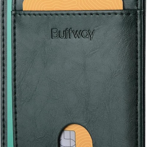 Buffway Slim Minimalist Front Pocket RFID Blocking Leather Wallets for Men and Women – Alaska Green