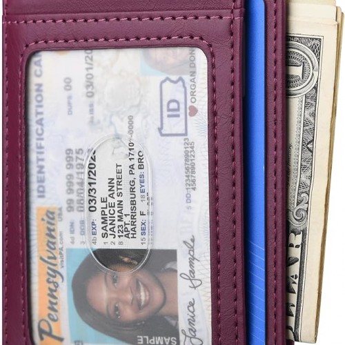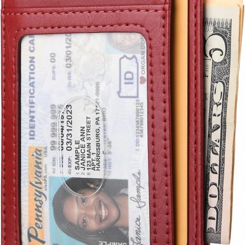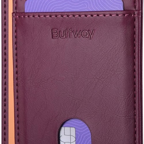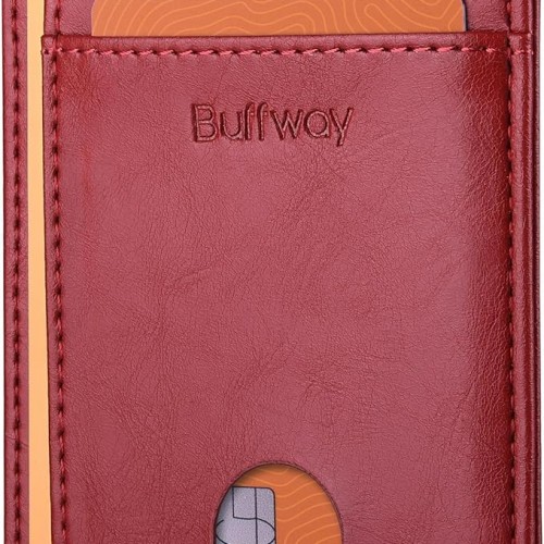 Buffway Slim Minimalist Front Pocket RFID Blocking Leather Wallets for Men and Women – Alaska Cherry