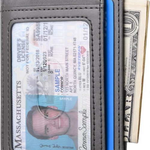 Buffway Slim Minimalist Front Pocket RFID Blocking Leather Wallets for Men and Women – Alaska Grey