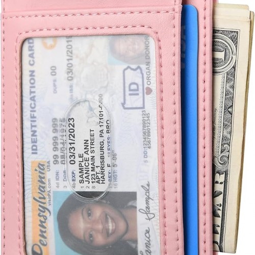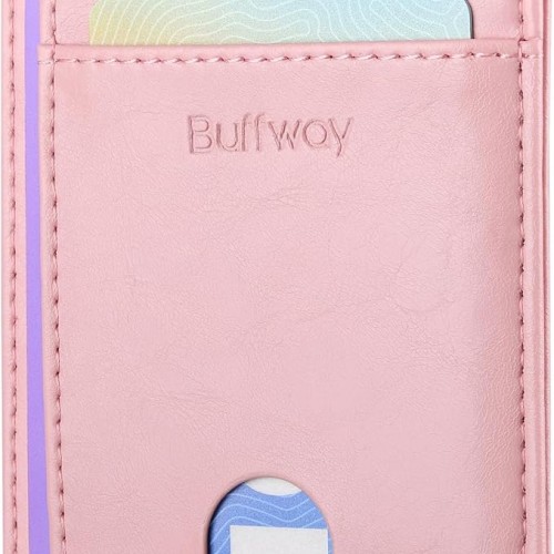 Buffway Slim Minimalist Front Pocket RFID Blocking Leather Wallets for Men and Women – Alaska Pink