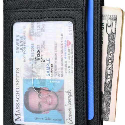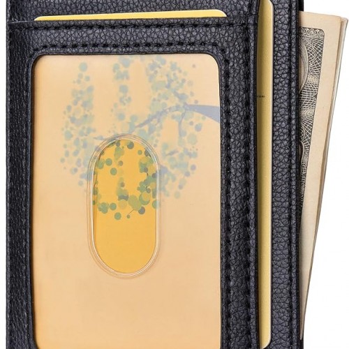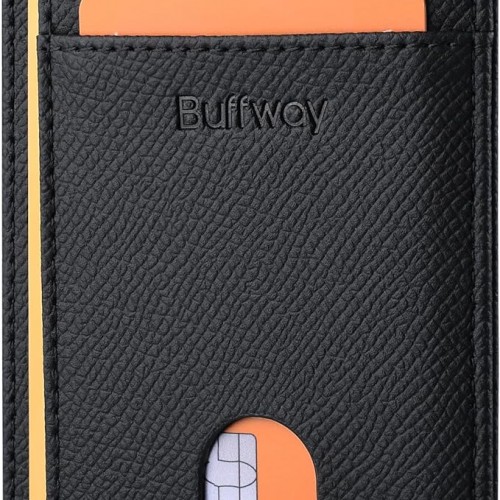 Buffway Slim Minimalist Front Pocket RFID Blocking Leather Wallets for Men and Women – Lichee Black