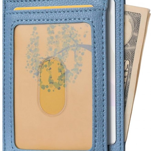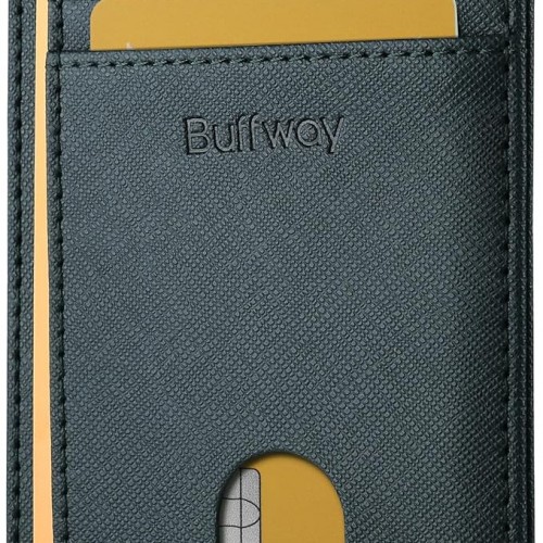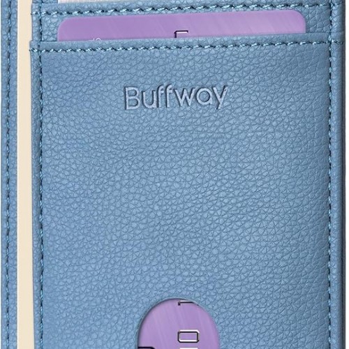 Buffway Slim Minimalist Front Pocket RFID Blocking Leather Wallets for Men and Women – Lichee Blue Grey