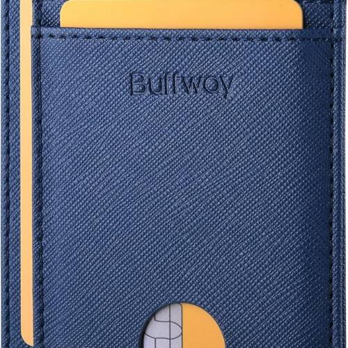 Buffway Slim Minimalist Front Pocket RFID Blocking Leather Wallets for Men and Women – Cross Blue