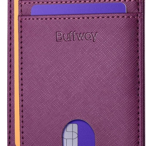 Buffway Slim Minimalist Front Pocket RFID Blocking Leather Wallets for Men and Women – Cross Purple