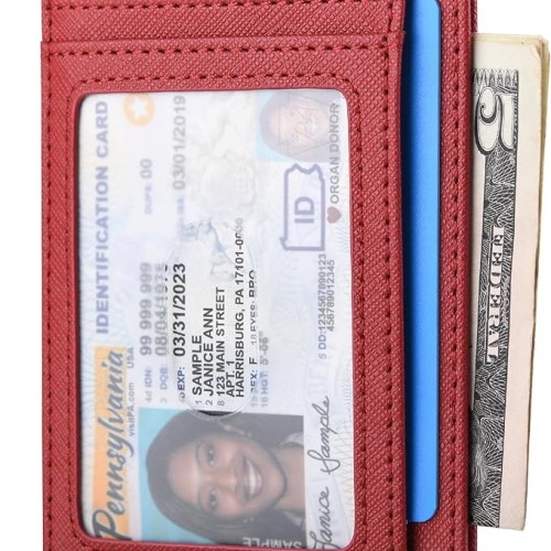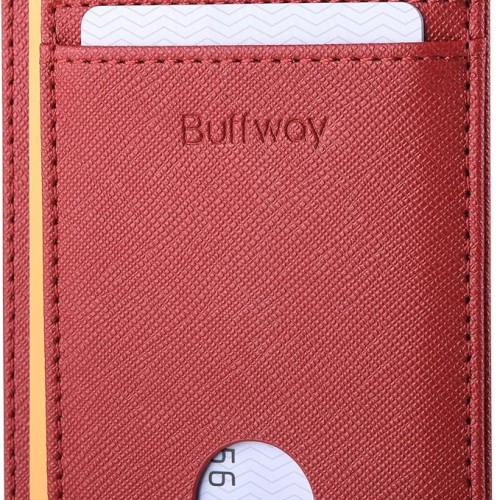 Buffway Slim Minimalist Front Pocket RFID Blocking Leather Wallets for Men and Women – Cross Red