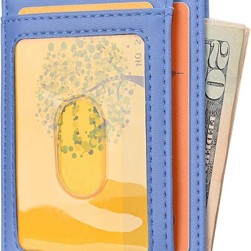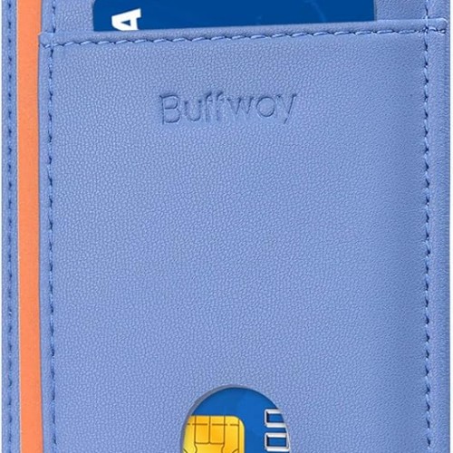 Buffway Slim Minimalist Front Pocket RFID Blocking Leather Wallets for Men and Women – Sand Wathet Blue
