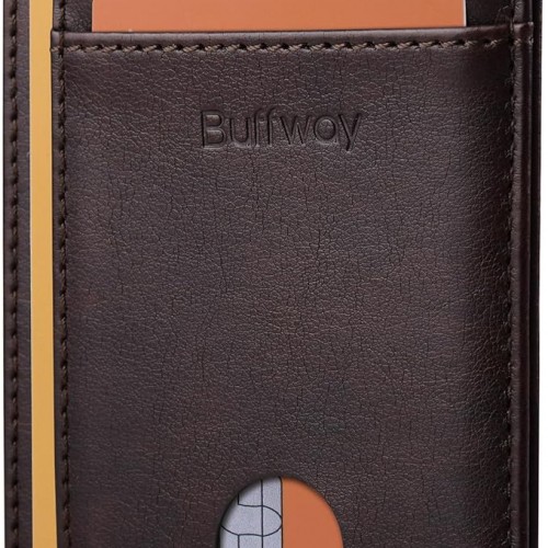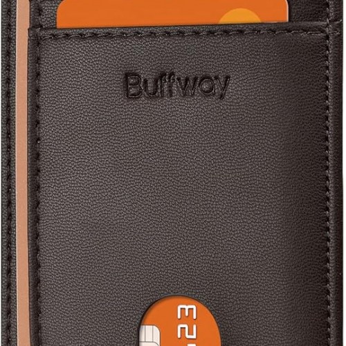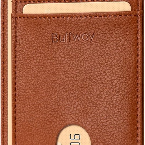 Buffway Slim Minimalist Front Pocket RFID Blocking Leather Wallets for Men and Women – Pebble Brown