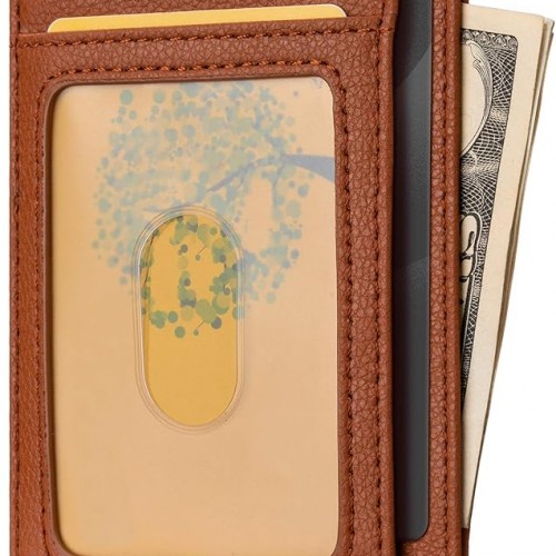 Buffway Slim Minimalist Front Pocket RFID Blocking Leather Wallets for Men and Women – Lichee Light Brown