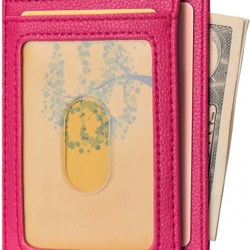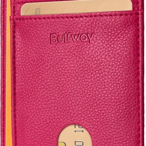 Buffway Slim Minimalist Front Pocket RFID Blocking Leather Wallets for Men and Women – Lichee Pink