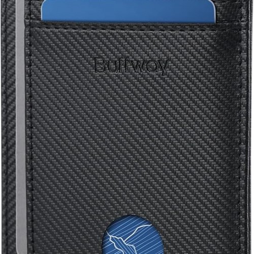 Buffway Slim Minimalist Front Pocket RFID Blocking Leather Wallets for Men and Women – Peak Black