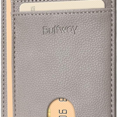 Buffway Slim Minimalist Front Pocket RFID Blocking Leather Wallets for Men and Women – Lichee Khaki