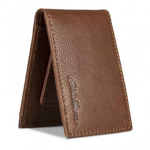 Eddie Bauer Leather RFID Money Clip Wallet w/3 Card Slots – Brown