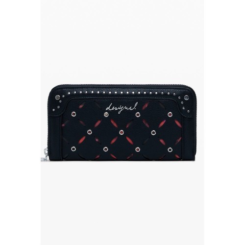 Desigual Elegant Black Zip Wallet with Contrasting Accents