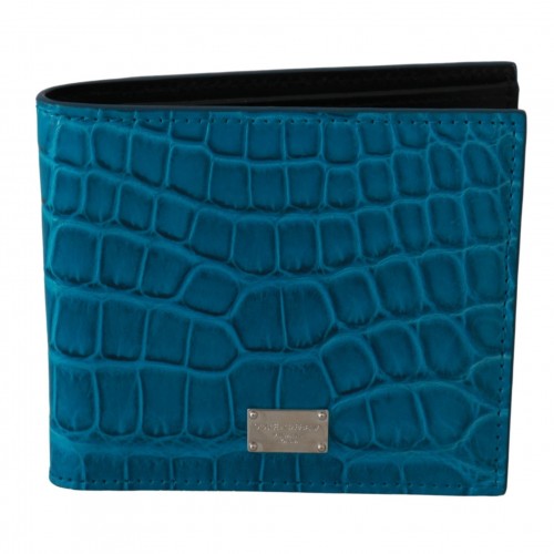 Dolce & Gabbana Blue Alligator Pattern Leather Bifold Wallet