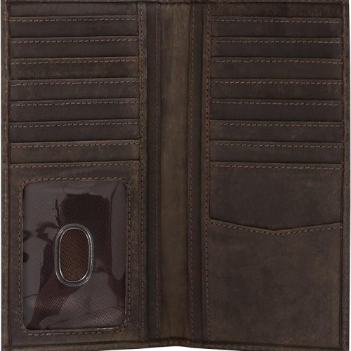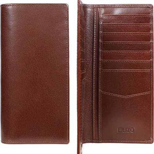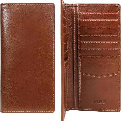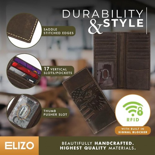 ELIZO Men’s Genuine Leather Long Wallet – RFID Blocking Rodeo Checkbook Wallet | Slim Western Bifold Wallet with 16 Card Slots, ID Window | Top Grain Leather Cowboy Wallet