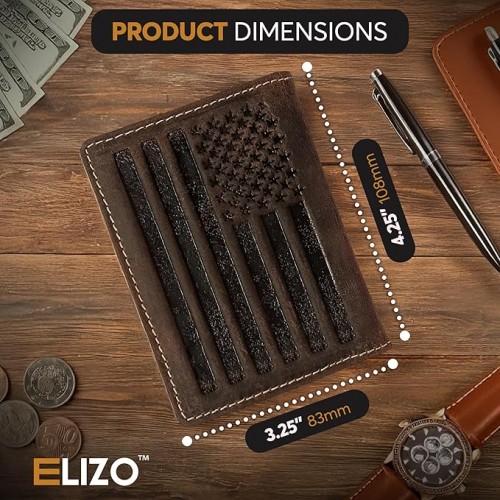 ELIZO Leather Short Wallet for Men Western Wallet Rodeo Mens Wallet Flat Bifold Wallets for Men Biker Billfold Wallet for Men Cowboy Wallet RFID Wallet for Men with Credit Card Holder – Large Flag
