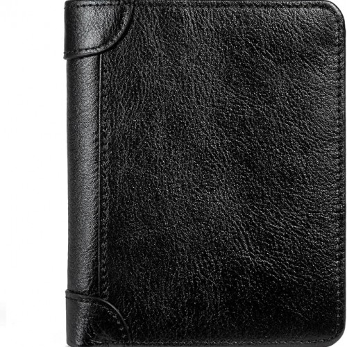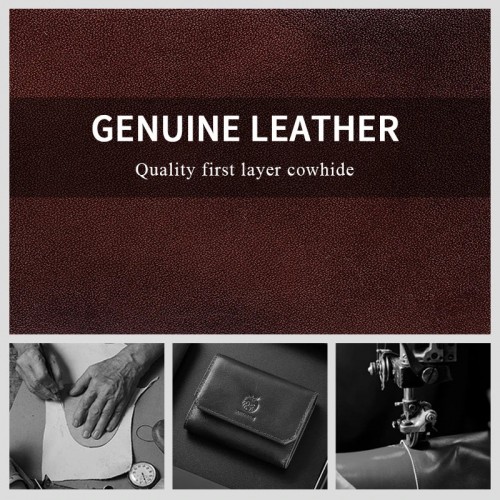 Genuine Leather Wallet for Men with RFID Trifold Business Short Small Cowskin Purse with ID Window and Credit Card Holder