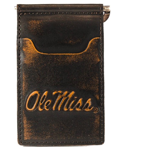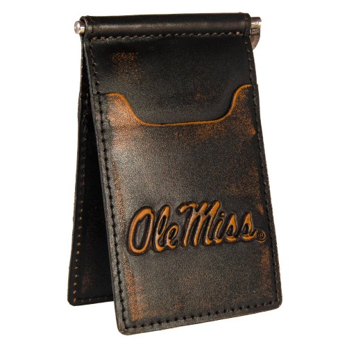 Ole Miss Rebels Burnished Leather Front Pocket Clip Wallet