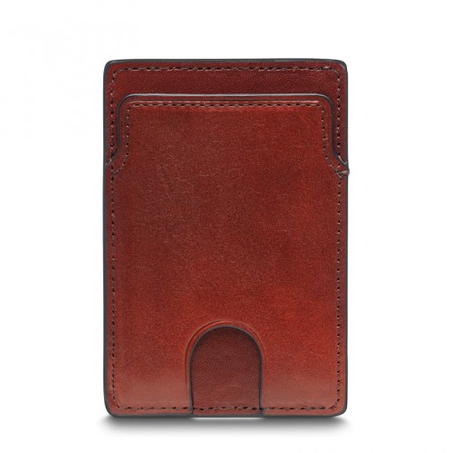 Old Leather Front Pocket ID Wallet with clip-Cognac
