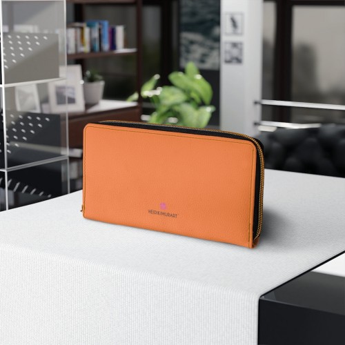 Orange Color Zipper Wallet, Solid Orange Color Long Compact Designer Premium Quality Women’s Wallet