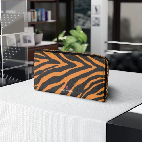 Orange Zebra Print Zipper Wallet, Best Zebra Striped Animal Print Gold Color Zipper Wallet For Women