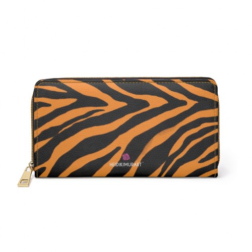 Orange Zebra Print Zipper Wallet, Best Zebra Striped Animal Print Gold Color Zipper Wallet For Women