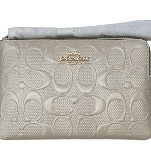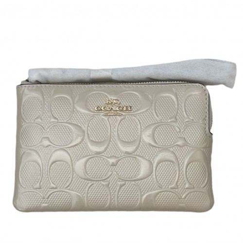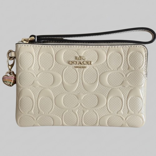 NWT Coach Corner Zip Wristlet Wallet In Signature Patent Leather In Ivory