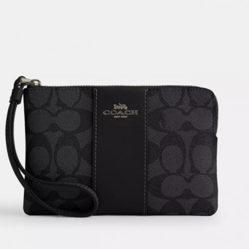 NWT Coach Corner Zip Wristlet In Signature Jacquard