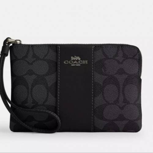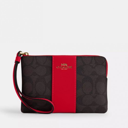 NWT Coach Corner Zip Wristlet Wallet In Signature Canvas & Leather