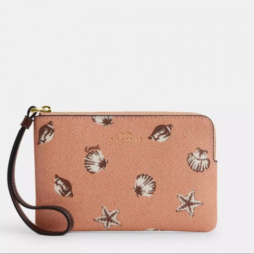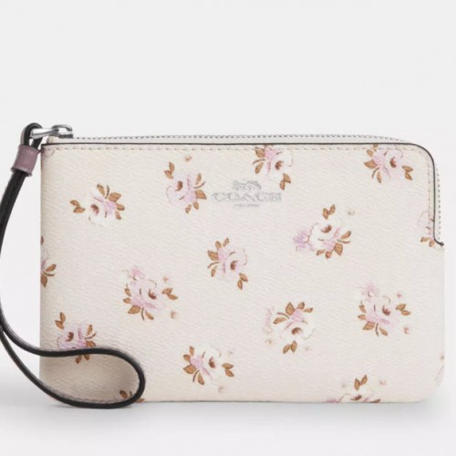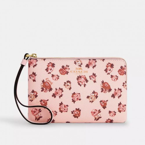 NWT Coach Corner Zip Wristlet With Rosette Print