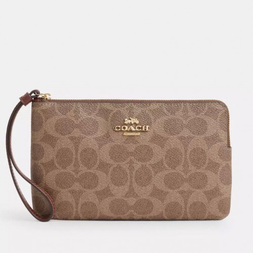 NWT Coach Large Corner zip Wristlet Wallet In Signature Canvas
