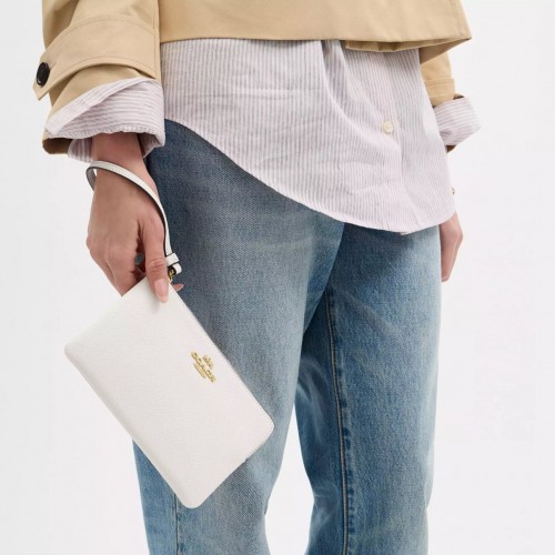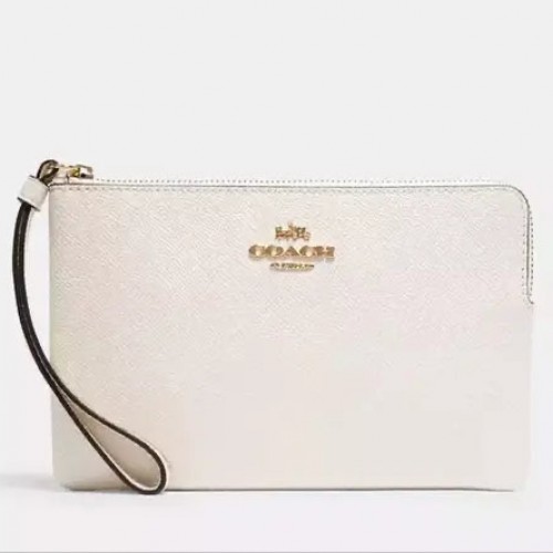 NWT Coach Large Corner zip Wristlet Wallet In Gold/Chalk