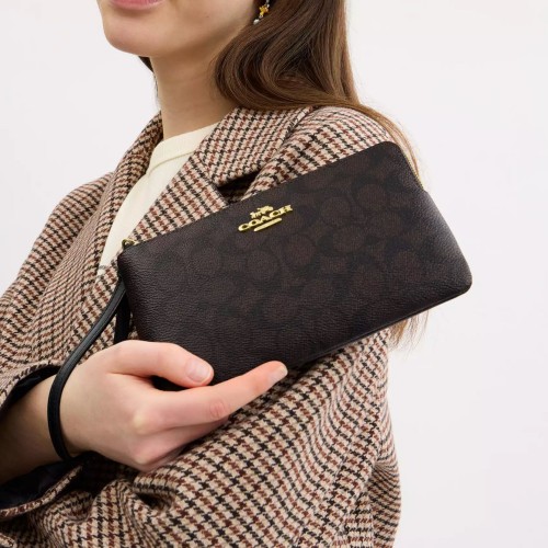 NWT Coach Large Corner zip Wristlet Wallet In Signature Canvas & Leather