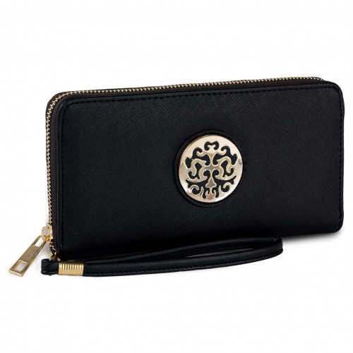 Rebecca & Rifka Saffiano Medallion Double Zip Wristlet Wallet